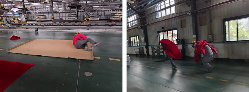 每组在抽签完成理论答题后,根据抽签内容进行火灾逃生或自身着火自救互救情景模拟。