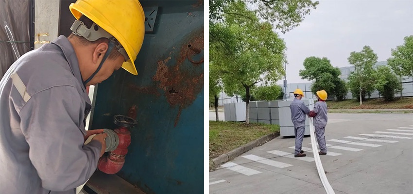 消防水带、水枪、水阀连接技能实操,提升灭火救援能力。