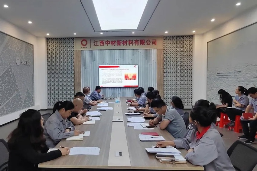 4月16日,江西中材党总支召开2025年度党建及党风廉政建设和反腐败工作会议。会议全面贯彻二十届中央纪委四次全会精神,深入落实上级党委2025年党风廉政建设和反腐败工作会议部署,总结2024年工作,部署2025年工作任务。江西中材党总支书记、副总经理胡小强主持会议,党总支纪检委员、生产总监肖永兵作工作报告。