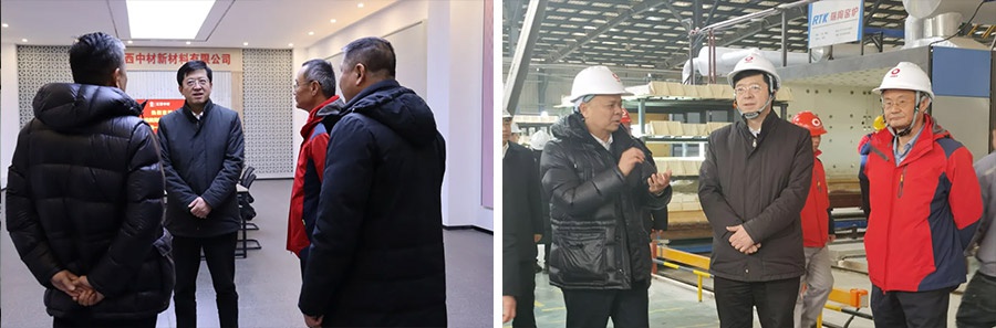 1月21日,中国建筑材料科学研究总院有限公司党委书记、董事长郅晓一行莅临调研。中国建筑材料科学研究总院有限公司党委委员、副总经理武发德、企业管理部(安全环保部)部长张明亮、党群部/宣传统战部副部长(主持工作)李桂金,中材高新材料股份有限公司党委书记、董事长李勇、党委副书记陈军荣、中材江西电瓷电气有限公司党委书记、董事长、总经理张旭昌等随同考察调研,江西中材新材料有限公司董事长、总经理孔令珂陪同。