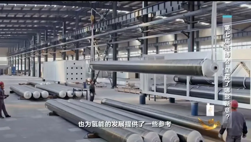 第二款产品就是中国建材这些年在碳纤维上面,在原来攻克T300的基础上,攻克了T700、T800,现在也已经成功攻克T1100,需要有高强轻质的碳纤维的这些领域,可以使用我们的产品。与此同时我们也用我们自己的T1100的产品,开发出来了氢气瓶,也为氢能的发展提供了一些参考,可以在无人机上用,可以在商用机上用,也可以在大卡车上用。