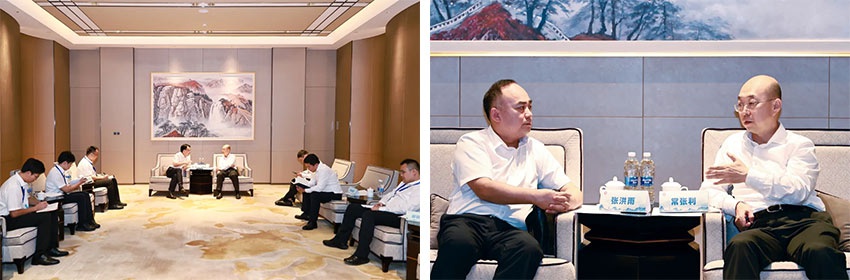 会议期间,常张利分别与浙江省建设投资集团股份有限公司副总经理钟建波,中能建绿色建材有限公司党委书记、董事长,中能建绿色先进材料研究院院长蒋洋,天津市管道工程集团有限公司总经理张洪雨等举行了会谈,围绕绿色建材、联合创新、产业投资、城市更新体系等方面的合作进行了深入交流。