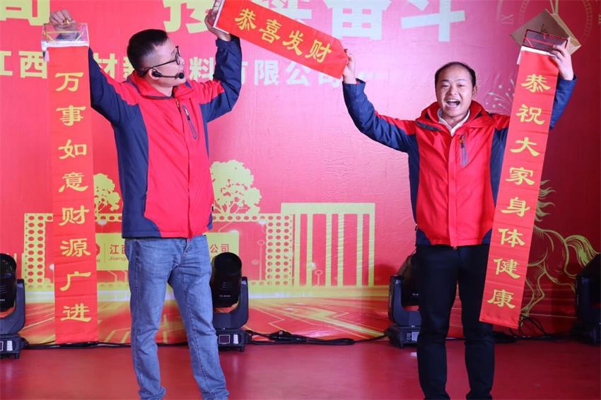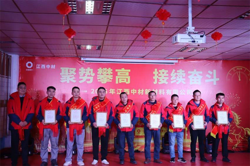 党总支书记胡小强向各位领导、合作伙伴及全体员工表示衷心感谢。他指出,2025 年公司在上级单位领导与客户支持下,稳中求进,运营质效持续优化。一是践行“早细精实”,筑牢发展根基。推动销售经销转直营模式,构建“线上+线下+实地”多元推广模式,销量同比增长17%。二是坚持对标对表,数智化融合赋能。数字化水平升级,推进两化融合,实现能耗可视化,质量实时推送,纳税信用获评A级,通过安全生产二级标准化认证。三是坚持守正创新,以“好材料”助力“好房子”建设,深耕城市更新应用领域,助力北京城市更新项目,并获得央视报道,完成新产品小试。四是强化党建引领,巩固强基工作。深入学习贯彻党的二十届四中全会精神,开展深入贯彻中央八项规定精神学习教育,推进链上党建,持续保持地方党建示范点。 2026 年是“十五五” 开局之年,江西中材将锚定目标、勇毅前行,加快推进第二基地建设、品牌升级、模式创新与核心技术攻关,持续巩固行业领先地位。新征程上,公司将以更昂扬的姿态接续奋斗,践行 “材料创造美好世界” 的使命,共绘高质量发展新篇章。同时,也向大家致以马年新春祝福,祝愿大家万事顺意、阖家安康。