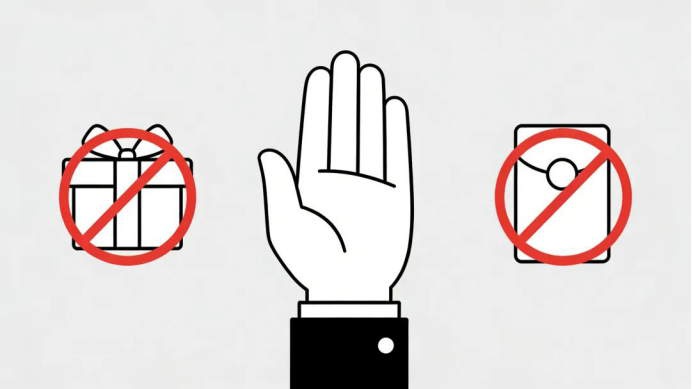 一、严禁违规收送礼品礼金。不得违规收受管理服务对象、下属单位及个人赠送的名贵特产、购物卡、电子红包、提货券等各类礼品礼金,严禁以任何形式变相收送财物。